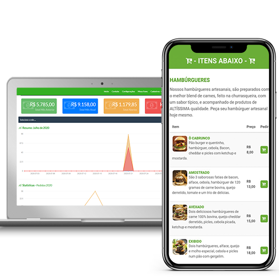 Nosso sistema e um aplicativo web totalmente responsivo e não possui necessidade de instalação por parte dos clientes, portanto, apenas divulgando o seu link nas redes sociais, o seu cliente pode visualizar seu menu e fazer o pedido pelo smartphone ou computador com muita comodidade.
